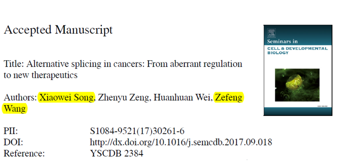 65. Song, X., et al., Alternative splicing in cancers: From aberrant regulation to new therapeutics. Semin Cell Dev Biol, 2017.