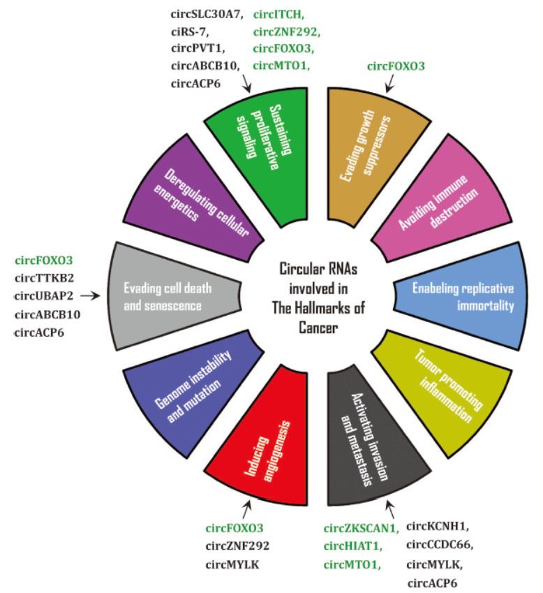 64. Yang, Z., et al., Circular RNAs: Regulators of Cancer-Related Signaling Pathways and Potential Diagnostic Biomarkers for Human Cancers. Theranostics, 2017. 7(12): p. 3106-3117.