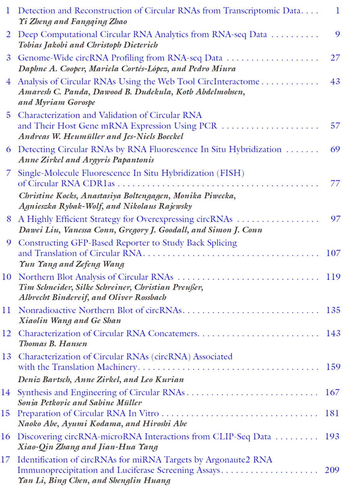 图1 《Methods in Molecular Biology》circRNA专刊目录截图