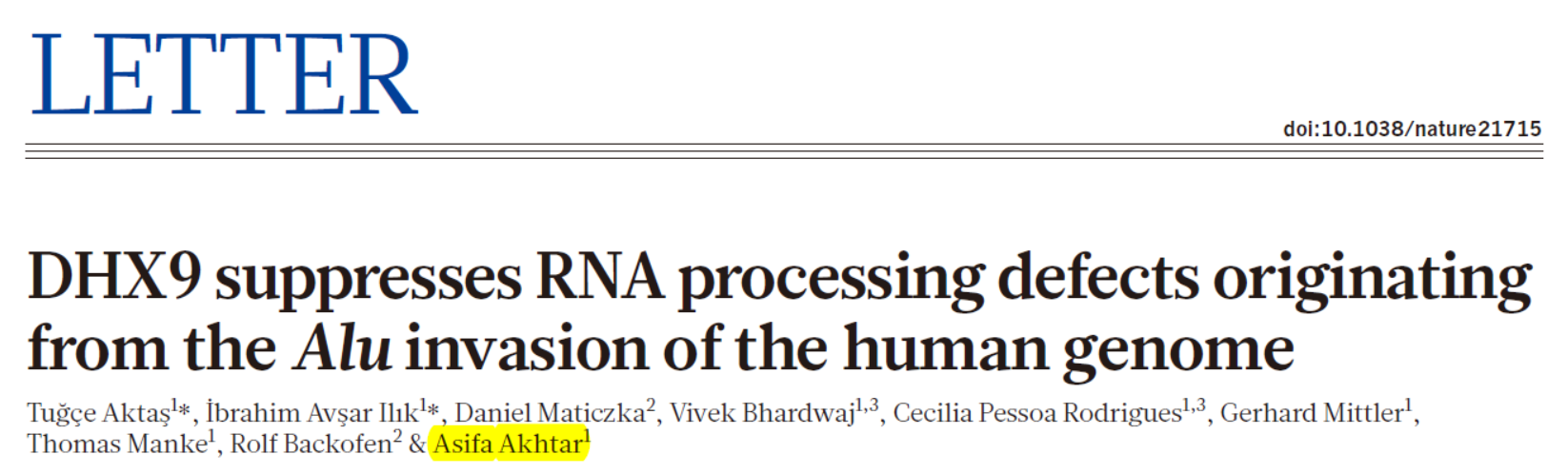 5. Aktas, T., et al., DHX9 suppresses RNA processing defects originating from the Alu invasion of the human genome. Nature, 2017.