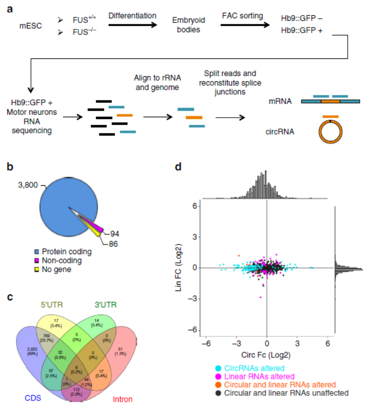 7. Errichelli, L., et al., FUS affects circular RNA expression in murine embryonic stem cell-derived motor neurons. Nat Commun, 2017. 8: p. 14741.