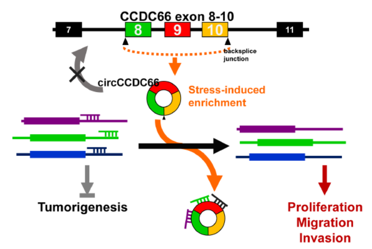 3月1日,Cancer Research杂志在线发表了台湾国立成功大学Shaw-Jenq Tsai博士和H. Sunny Sun博士为共同通讯作者的文章,介绍发现环状RNA CCDC66促进结肠癌增殖和转移[8]。