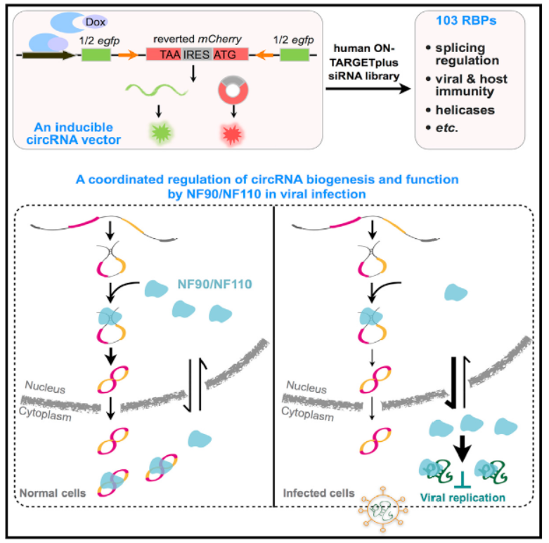 1. Li, X., et al., Coordinated circRNA Biogenesis and Function with NF90/NF110 in Viral Infection. Mol Cell, 2017.