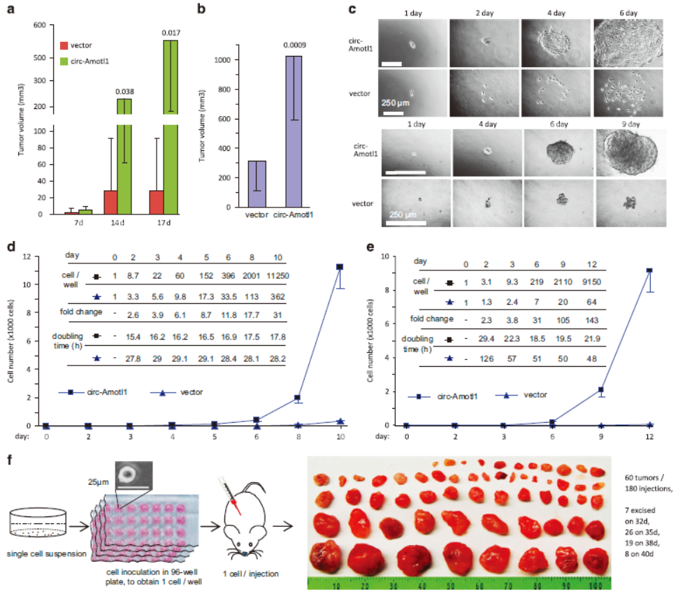图4过表达circ-Amotl1促进肿瘤生成(来自[4])