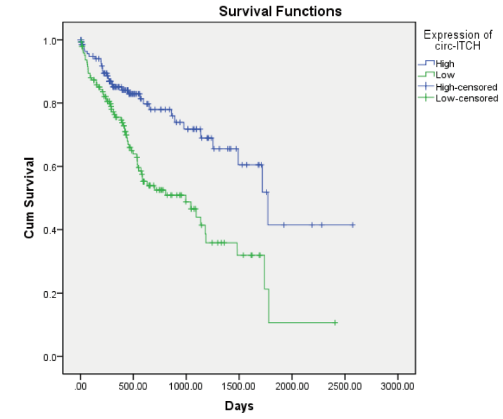 本中作者发现两种circ-ITCH的位点多态性:rs10485505和rs4911154与HCC的疾病进程相关性很高,这两种多态性意味着恶性程度更高的HCC。此外,作者也证明在HCC标本中circ-ITCH的表达量要低于癌旁组织,高表达circ-ITCH的临床预后较好[5]。