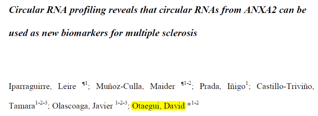 6月23日,Human Molecular Genetics杂志在线发表了西班牙Biodonostia健康研究所Otaegui, David为通讯作者的文章,介绍在多发性硬化症(multiple sclerosis)中circRNA circ-ANXA2可作为疾病标志物的研究[6]。