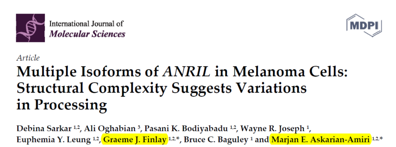 6月27日,International Journal of Molecular Sciences杂志在线发表了新西兰奥克兰大学Graeme J. Finlay教授和Marjan E. Askarian-Amiri教授为共同通讯作者的文章。介绍发现在黑色素瘤中非编码RNA基因ANRIL存在多种Isoform形式,其中也包括circRNA[7]。