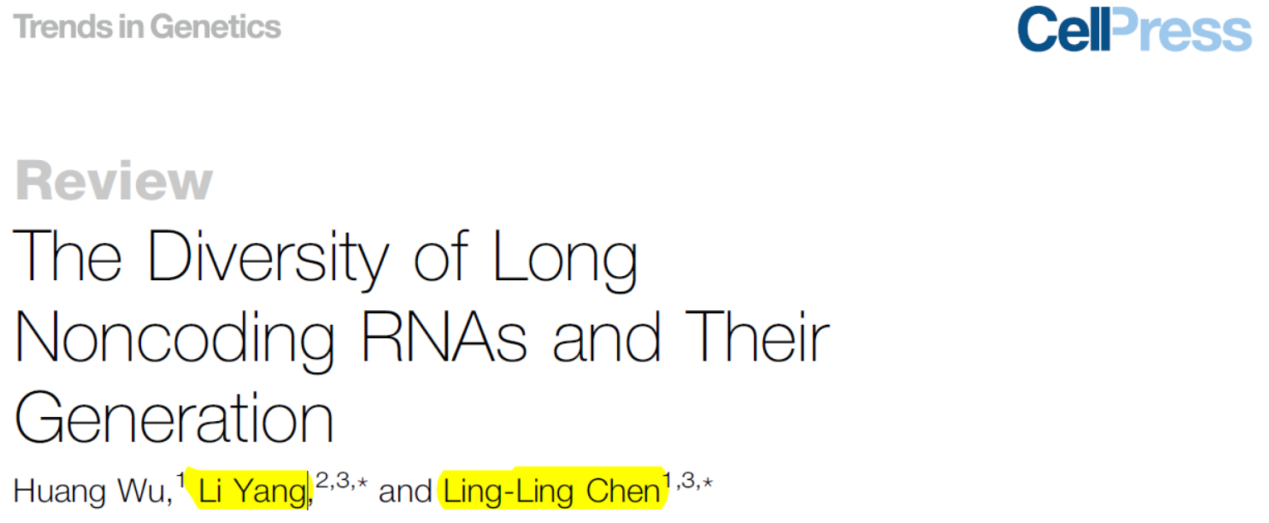 6月16日,Cell子刊Trends in Genetics在线发表了陈玲玲教授和杨力教授为共同通信作者的综述文章,系统整理归纳了非编码RNA形成机制和多样性的研究进展,其中也汇总了circRNA的形成机制研究进展[13]。