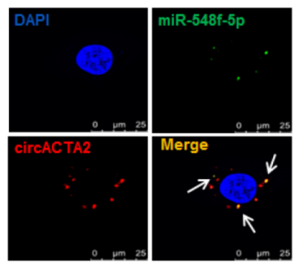 1. Sun, Y., et al., A Novel Regulatory Mechanism of Smooth Muscle alpha-actin Expression by NRG-1/circACTA2/miR-548f-5p Axis. Circ Res, 2017.