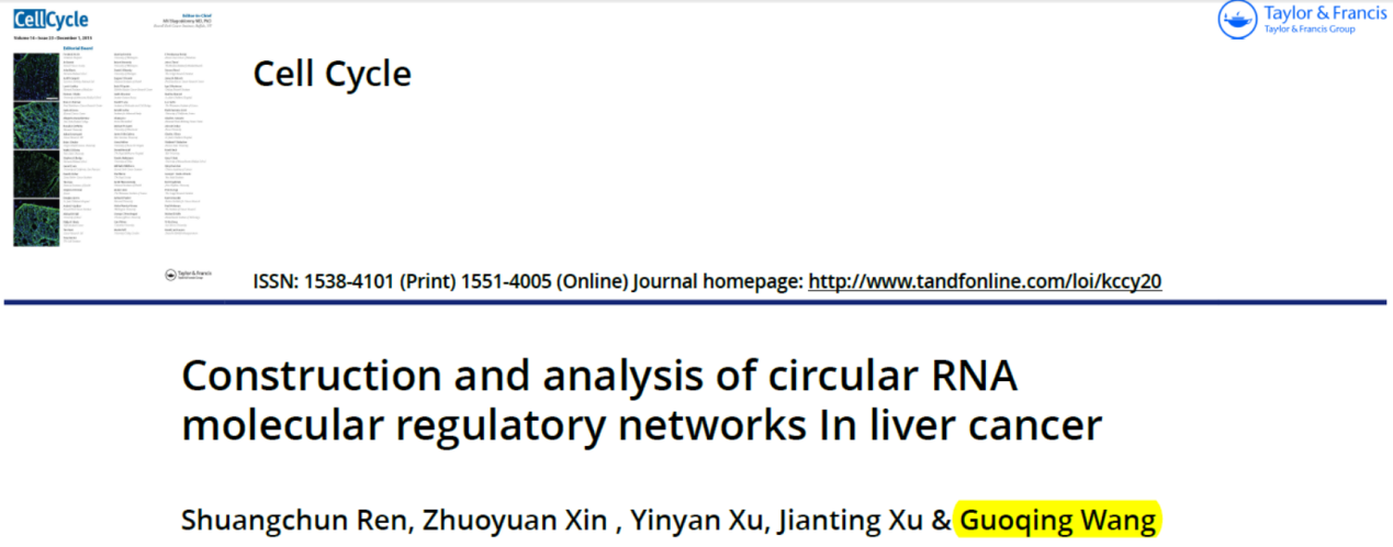 7月30日,Cell Cycle杂志在线发表了吉林大学基础医学院王国庆教授为通讯作者的文章,介绍在肝癌细胞中基于系统生物学思路构建了分子调控回路网络。其中包含了circRNA,mRNA和miRNA等不同类型的RNA分子[8]。
