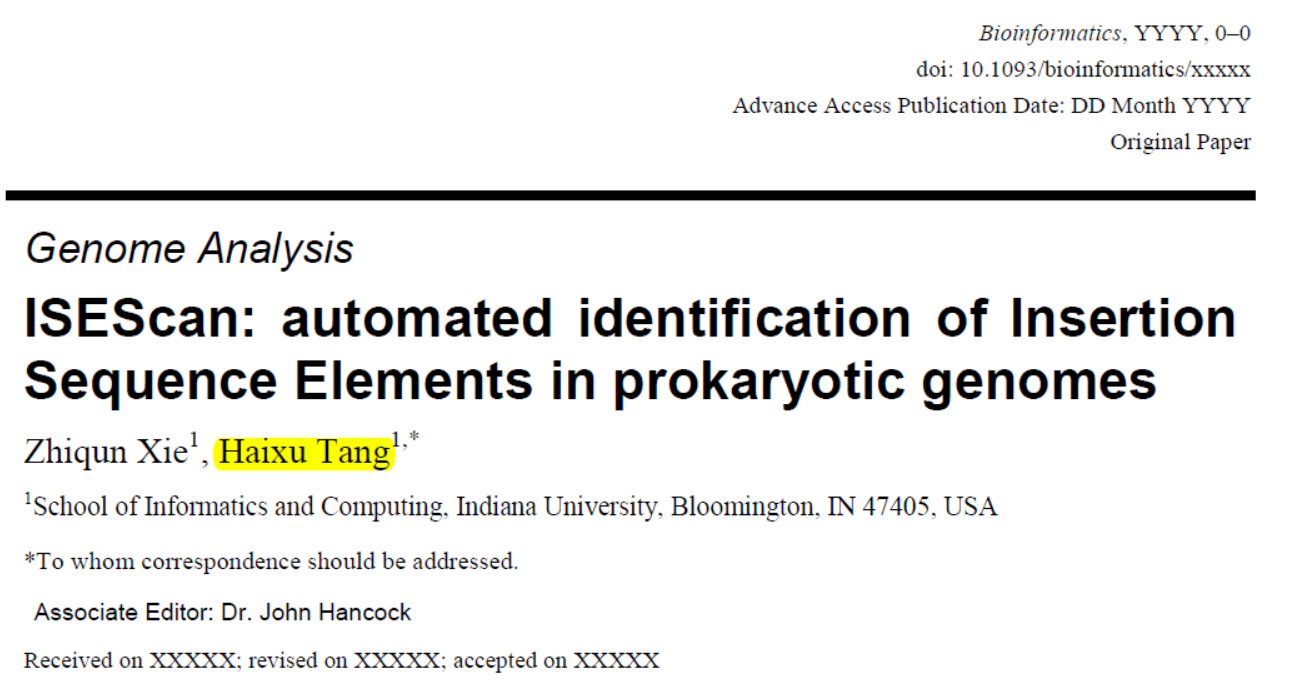 19. Zhiqun Xie, H.T., ISEScan: automated identification of Insertion Sequence Elements in prokaryotic genomes. Bioinformatics, 2017.