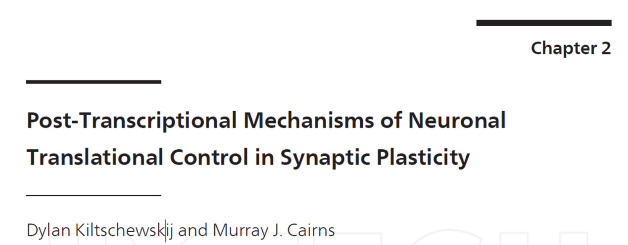 在即将出版的由 Thomas Heinbockel主导编纂的《Synaptic Plasticity》第二章,由澳大利亚纽卡斯尔大学Murray J. Cairns为通讯作者撰写完成。在该章节中,作者系统分析了与突触可塑性有关的RNA转录后翻译调控机制,其中circRNA作用通路也有所涉及。