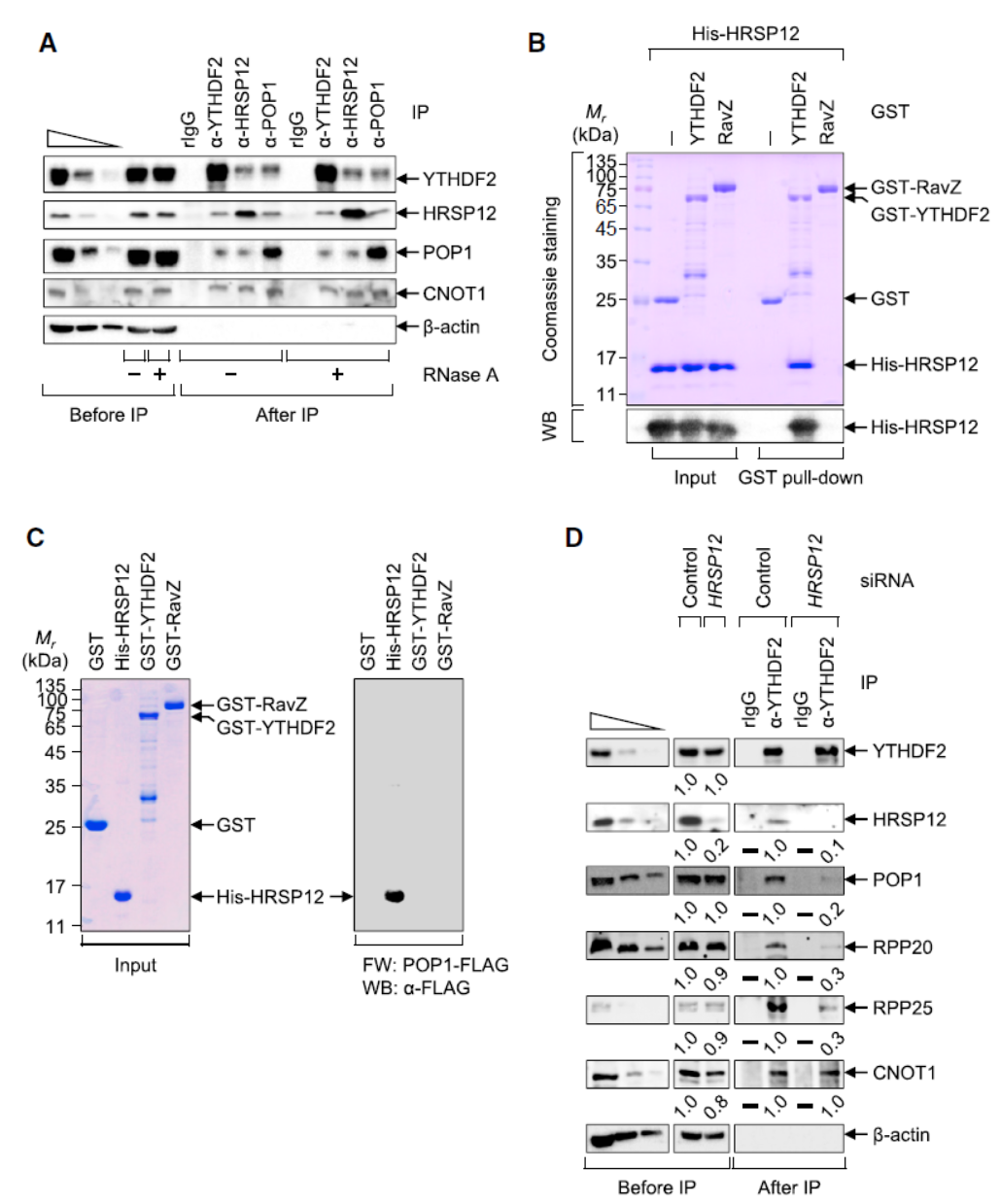 YTHDF2,HRSP12和RNase P/MRP复合物相互作用鉴定