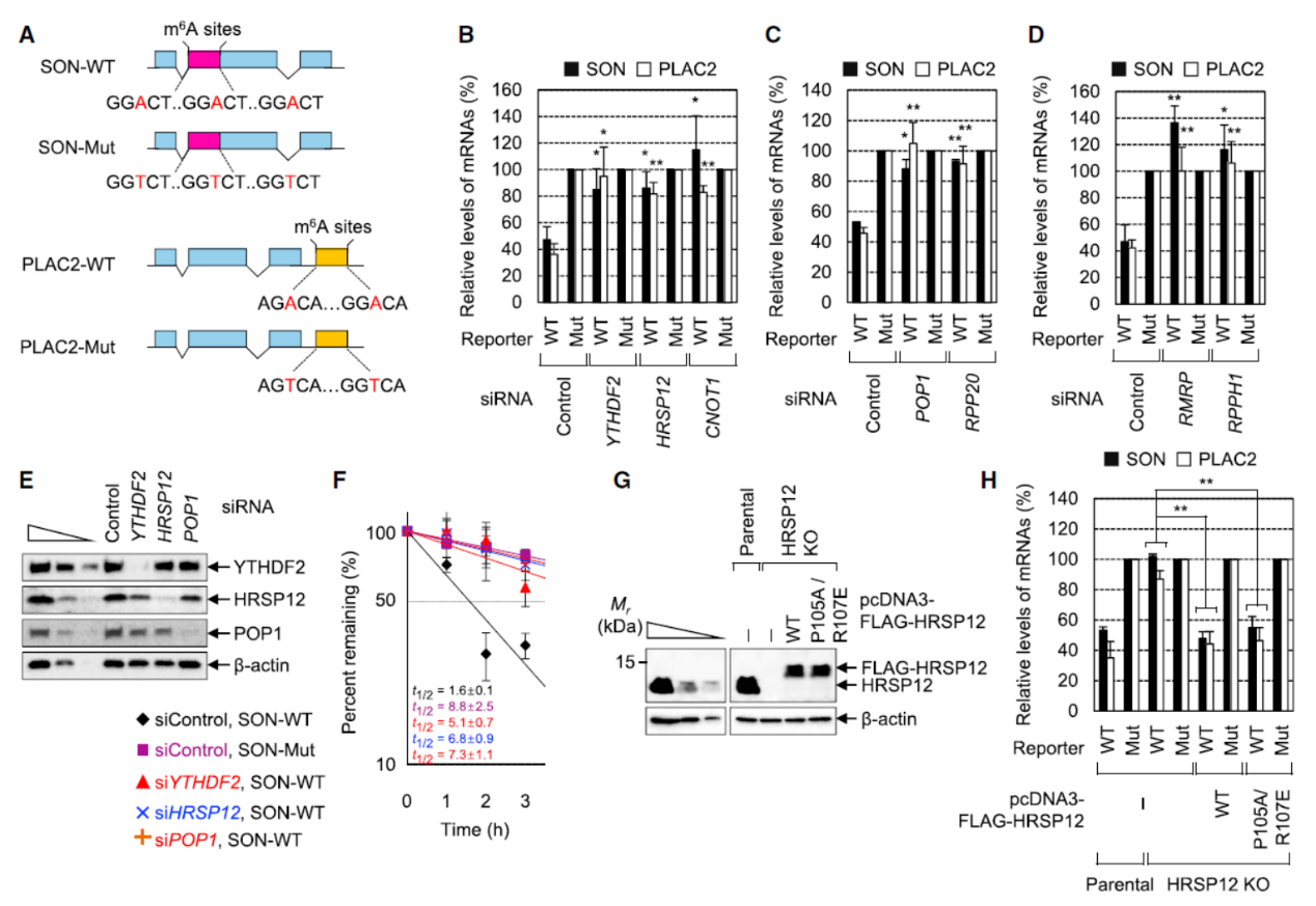 YTHDF2,HRSP12和POP1参与m6A介导的RNA降解