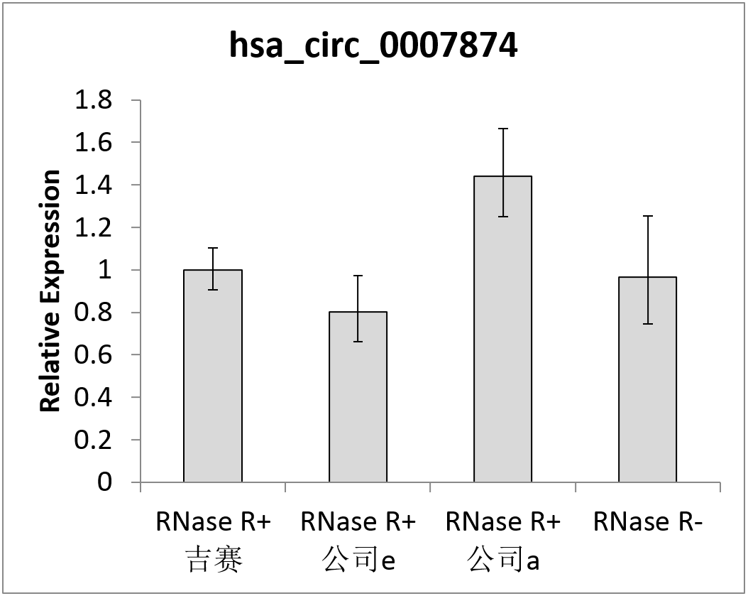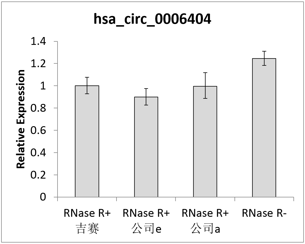 2)两次重复实验结果不一致。尽量同时进行RNase R+和RNase R-组的消化实验,使用相同的反应条件,PCR检测使用同样的条件和引物等。