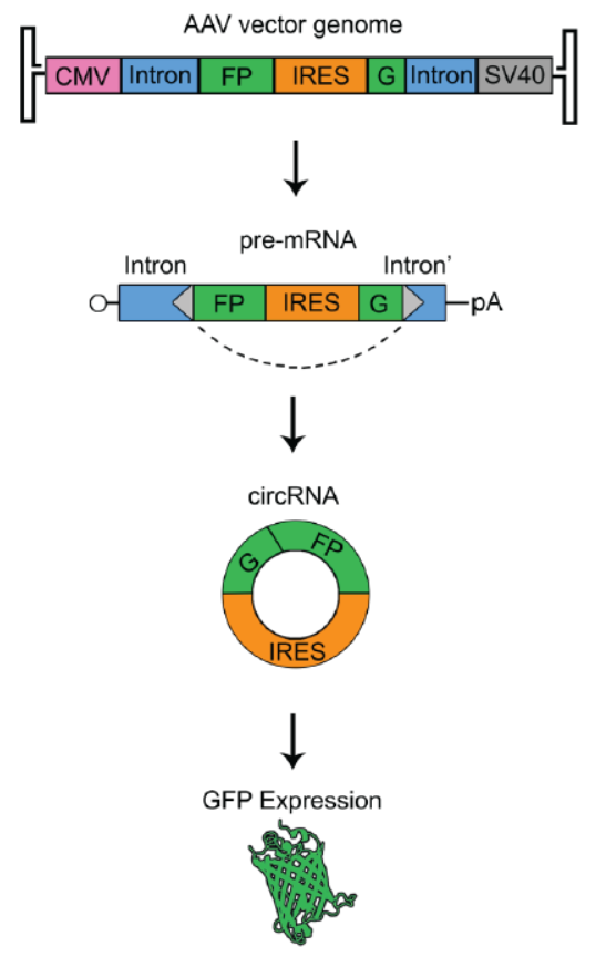 8月17日,Cell子刊Molecular Therapy: Nucleic Acid (影响因子5.66)在线发表了美国北卡罗来纳大学教堂山分校Aravind Asokan博士为通讯作者的文章, 介绍他们开发了一种基于腺相关病毒载体(rAAV)的体内表达circRNA并实现翻译蛋白的载体工具[1]。