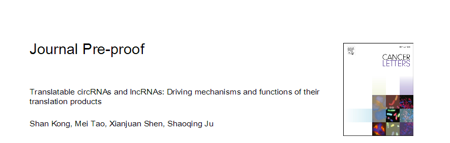 [1] S. Kong, M. Tao, X. Shen, S. Ju, Translatable circRNAs and lncRNAs:Driving mechanisms and functions of their translation products, Cancer Letters, https://doi.org/10.1016/j.canlet.2020.04.006