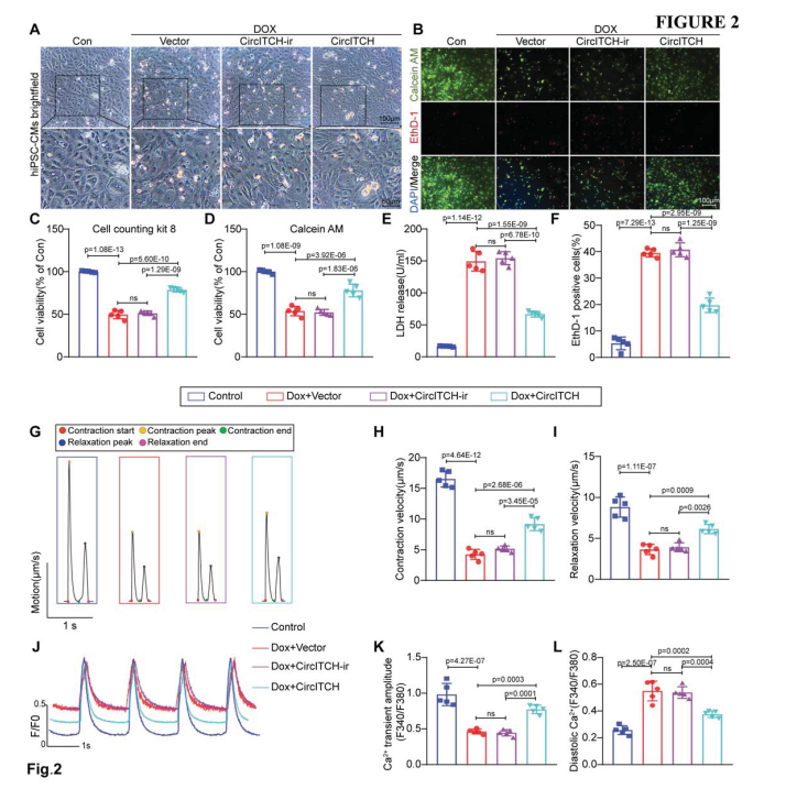 2 CircITCH过表达可减轻DOX诱导的细胞死亡、收缩功能障碍和钙处理缺陷