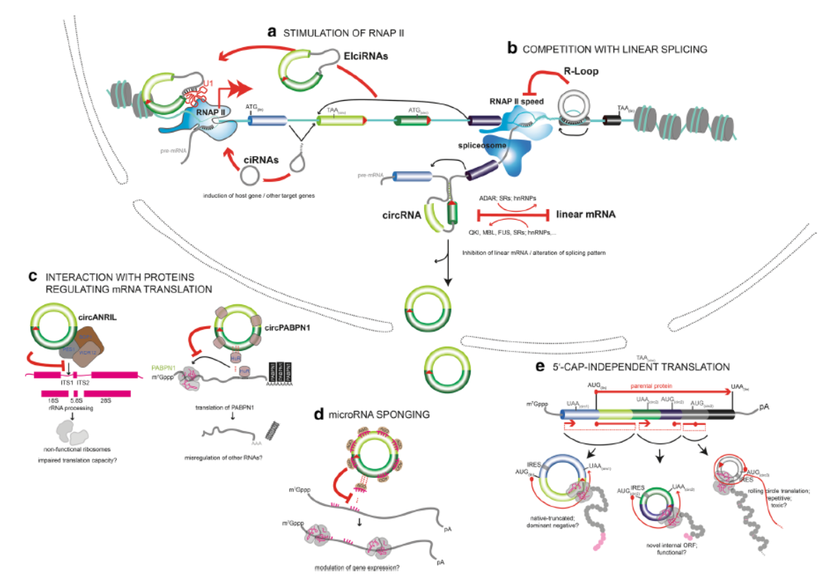 2. Holdt, L.M., A. Kohlmaier, and D. Teupser, Molecular roles and function of circular RNAs in eukaryotic cells. Cell Mol Life Sci, 2017.