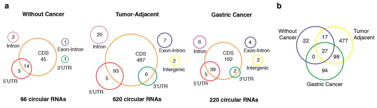 6. Vidal, A.F., et al., The comprehensive expression analysis of circular RNAs in gastric cancer and its association with field cancerization. Sci Rep, 2017. 7(1): p. 14551.
