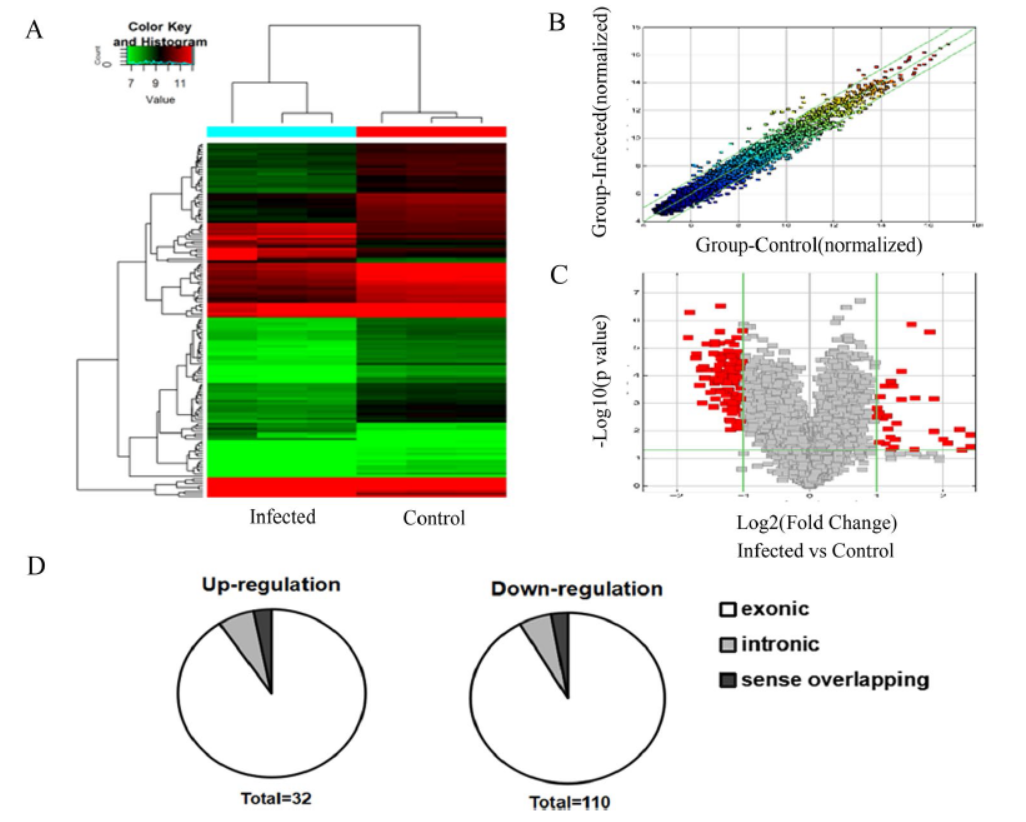 图9 结核杆菌感染后单核巨噬细胞circRNA表达变化分析 (来自[9])