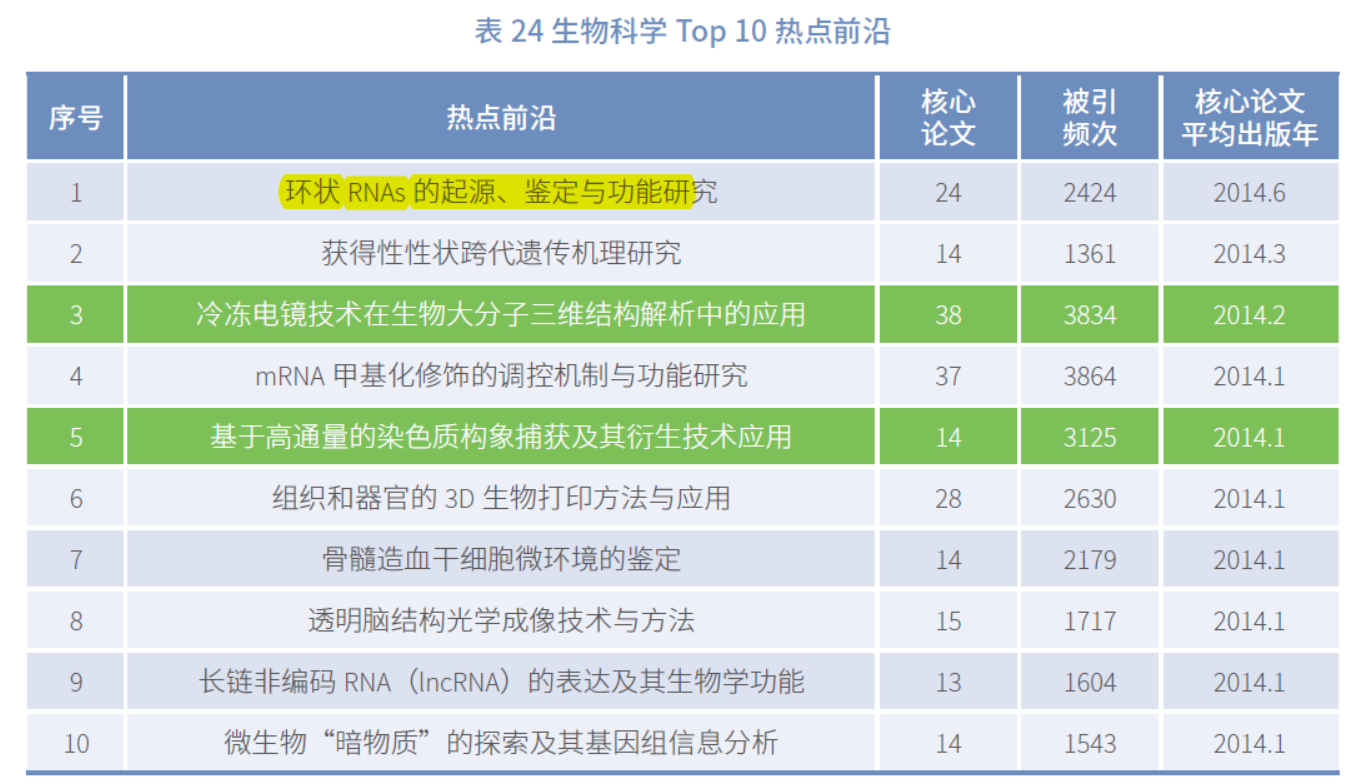 在近期由中国科学院科技战略咨询研究院,文献情报中心与科睿安公司联合发布的《2017研究前沿》中,circRNA荣登生物科学Top10热点榜。说明国内外对circRNA的研究正逐步升温。未来该领域必将受到热捧。