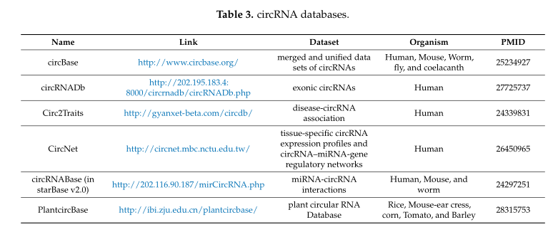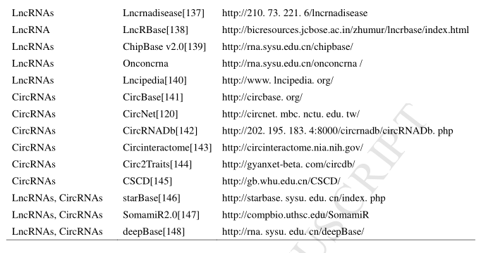 [2]S.-M. Wu et al., “circlncRNAnet: An integrated web-based resource for mapping functional networks of long or circular forms of non-coding RNAs,” GigaScience, 2017.