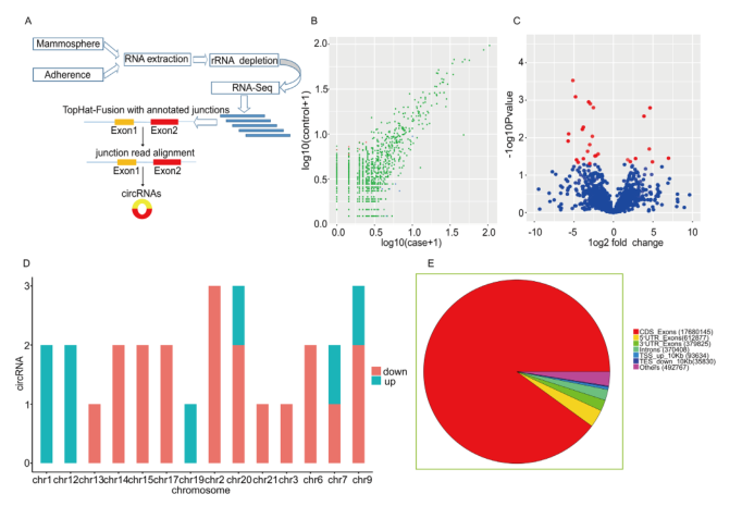图1注:高通量测序结果分析circRNAs在基因组上分布情况