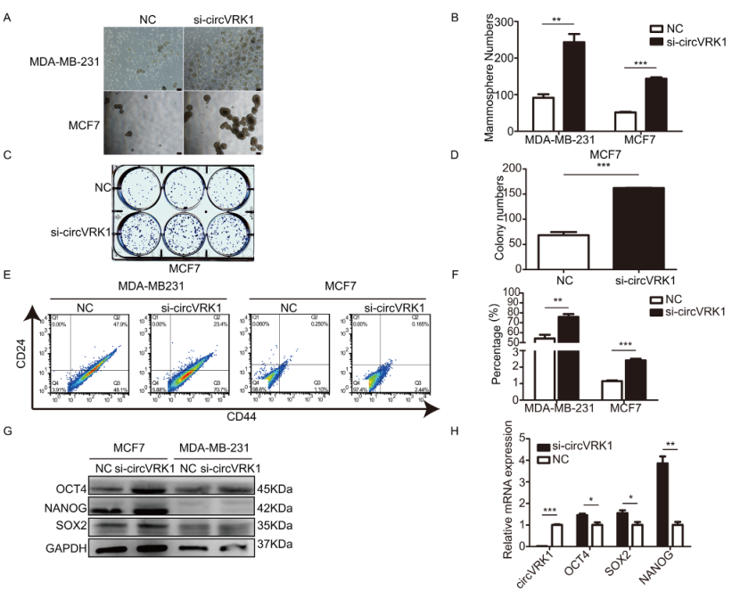 5、环形RNA分子circVRK1抑制乳腺癌干细胞BCSCs的扩增和自我更新能力