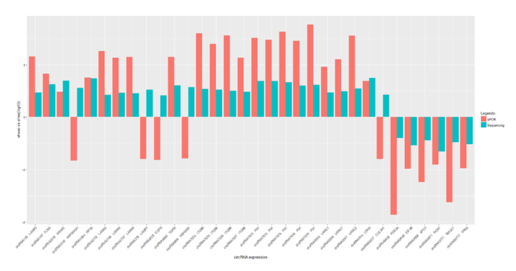 图2注:Qpcr验证32个差异表达的circRNAs分子