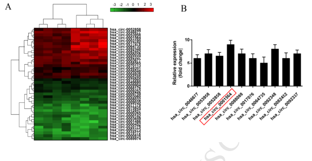 图注:circRNA芯片和PCR实验筛选出hsa_circ_0001564分子。