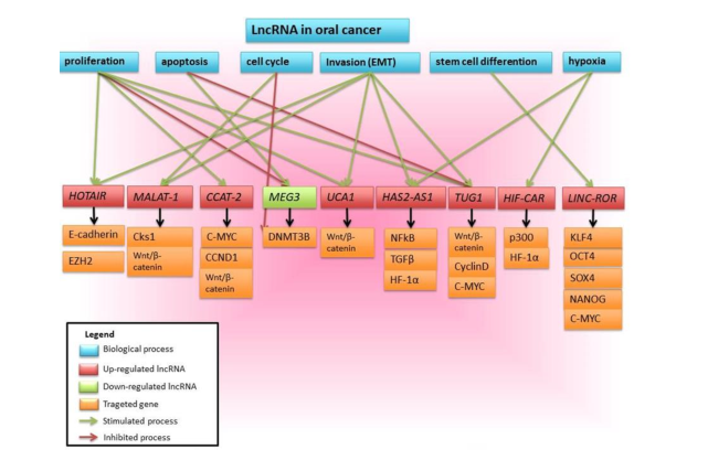 图2注:口腔癌中相关lncRNA功能机制研究图示