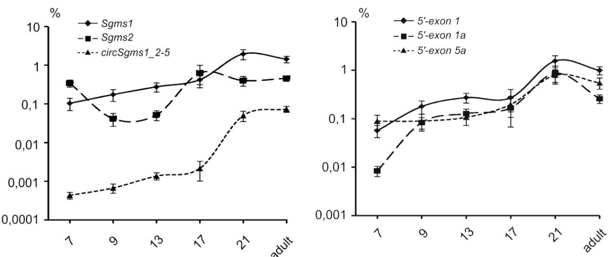 - Developmental stage-specific expression of genes for sphingomyelin synthase in rat brain