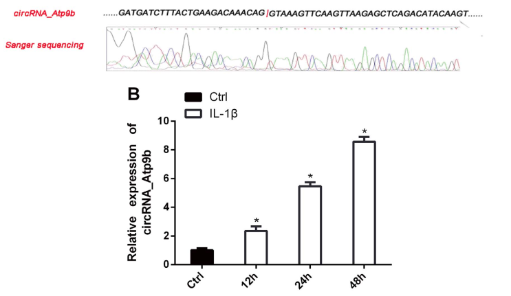 图注:circRNA_Atp9b在OA细胞模型中高表达