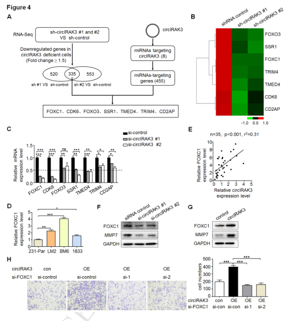 图3:circIRAK3通过miRNA sponge功能调控FOXC1的表达