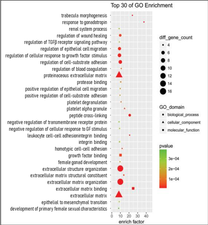 图注:前列腺癌中差异表达circRNA的宿主基因gene ontology富集分析结果(前30个term)