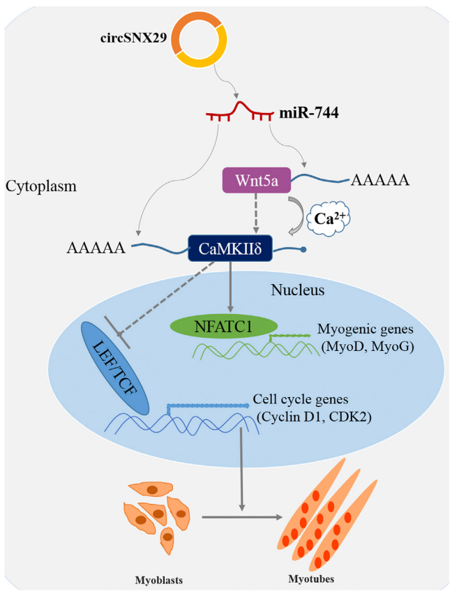 - 环状RNA SNX29海绵吸附miR-744通过激活Wnt5a/Ca2 +信号通路来调节成肌细胞的增殖和分化