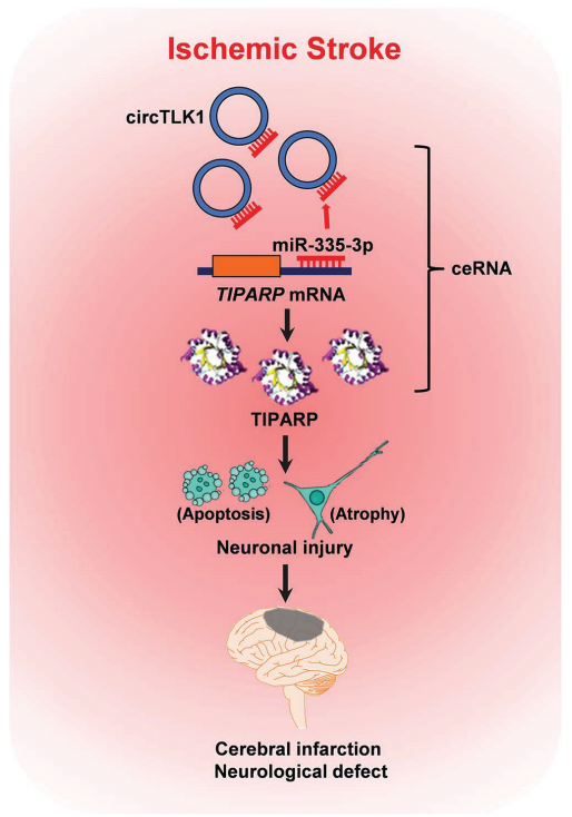 Circular RNA TLK1 aggravates neuronal injury and neurological deficits after ischemic stroke via miR-335-3p/TIPARP |