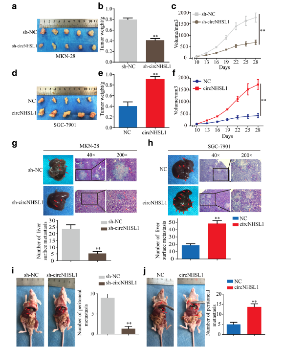 图注:体内动物实验结果表明circNHSL1可促进胃癌细胞的增殖和转移。