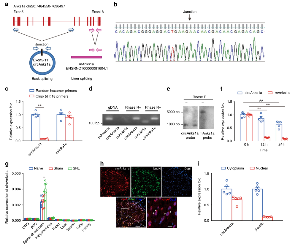 标题:CircAnks1a in the spinal cord regulates hypersensitivity in a rodent model of neuropathic pain