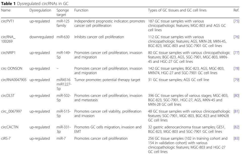 - 综述:胃癌中circRNA的生物发生,功能及临床意义。