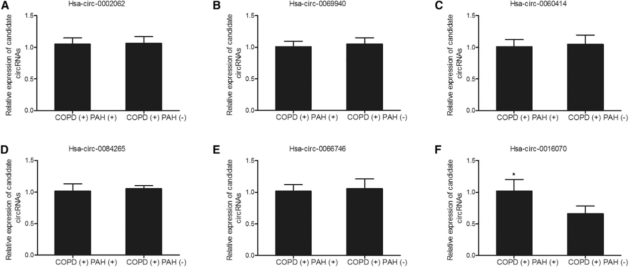 图注:circRNA芯片检测结果显示hsa_circ_0016070在PAH的COPD患者中表达水平差异。