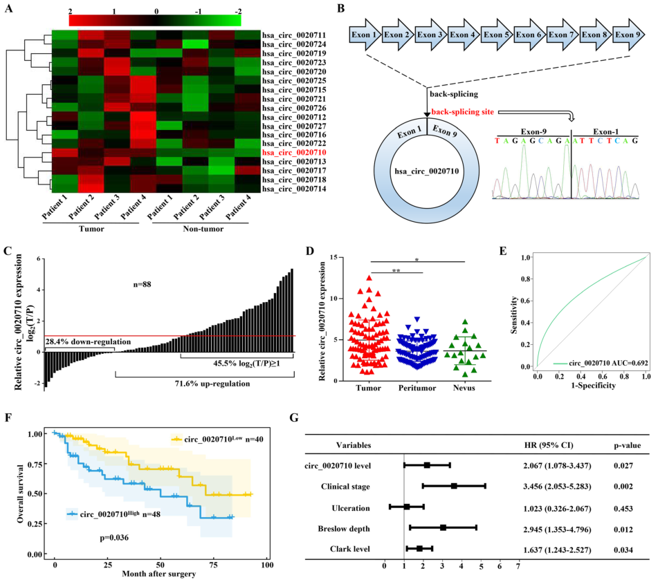 图注:黑色素瘤中CD151起源的circRNA表达及临床预后特征