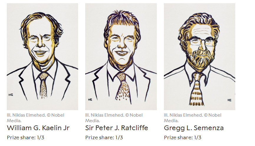 2019年诺贝尔生理学与医学奖授予哈佛医学院达纳-法伯癌症研究所的威廉·凯林( William G. Kaelin, Jr.),牛津大学和弗朗西斯·克里克研究所的彼得·拉特克利夫( Peter J. Ratcliffe) 以及美国约翰霍普金斯大学医学院的格雷格·塞门扎(Gregg L. Semenza),以表彰他们发现和解析氧感知信号通路的工作。