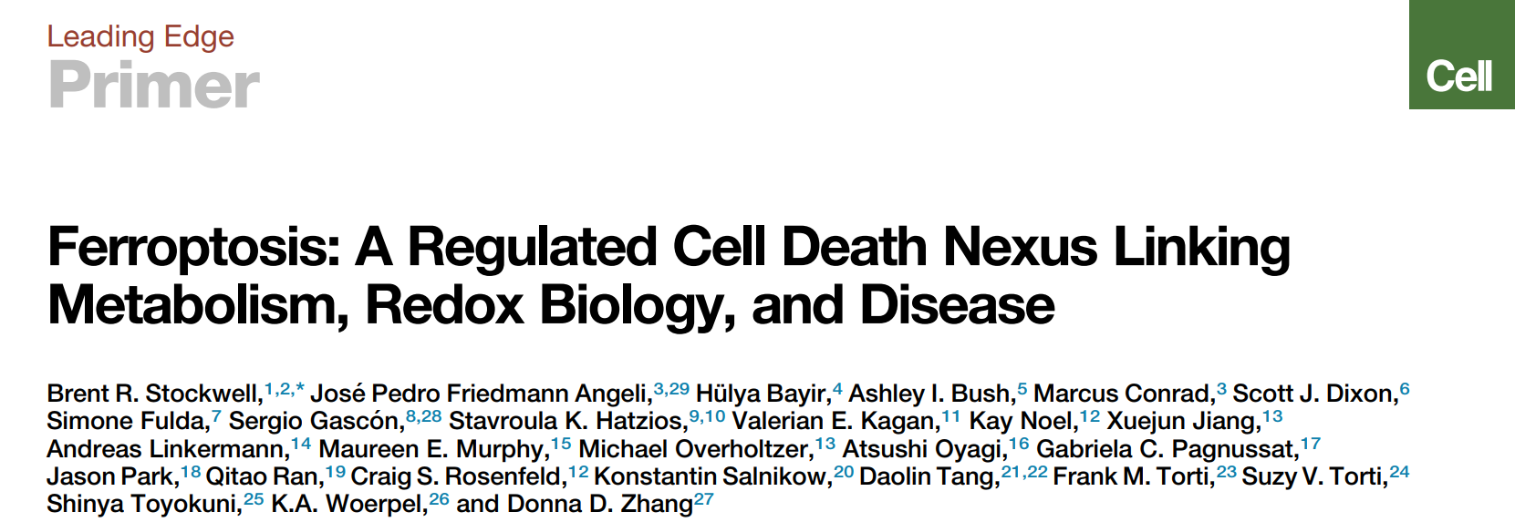 2017年10月5日,Cell发表了一篇铁死亡的重要综述文章,系统回顾整理了铁死亡的机制和主要研究进展([4]),我们下面就用这篇综述的内容介绍一下铁死亡: