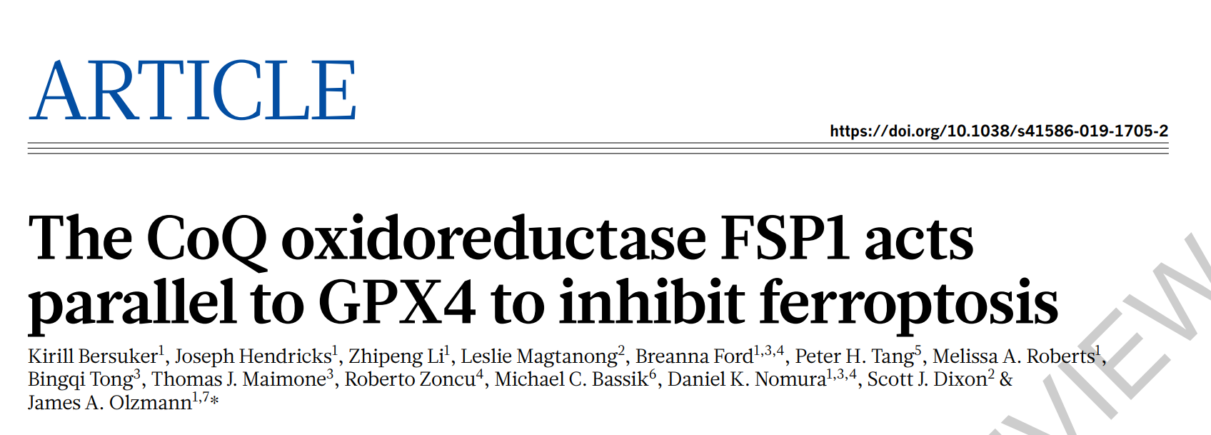 5. Bersuker, K., et al., The CoQ oxidoreductase FSP1 acts parallel to GPX4 to inhibit ferroptosis. Nature, 2019.