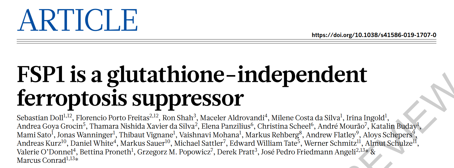 6. Doll, S., et al., FSP1 is a glutathione-independent ferroptosis suppressor. Nature, 2019.
