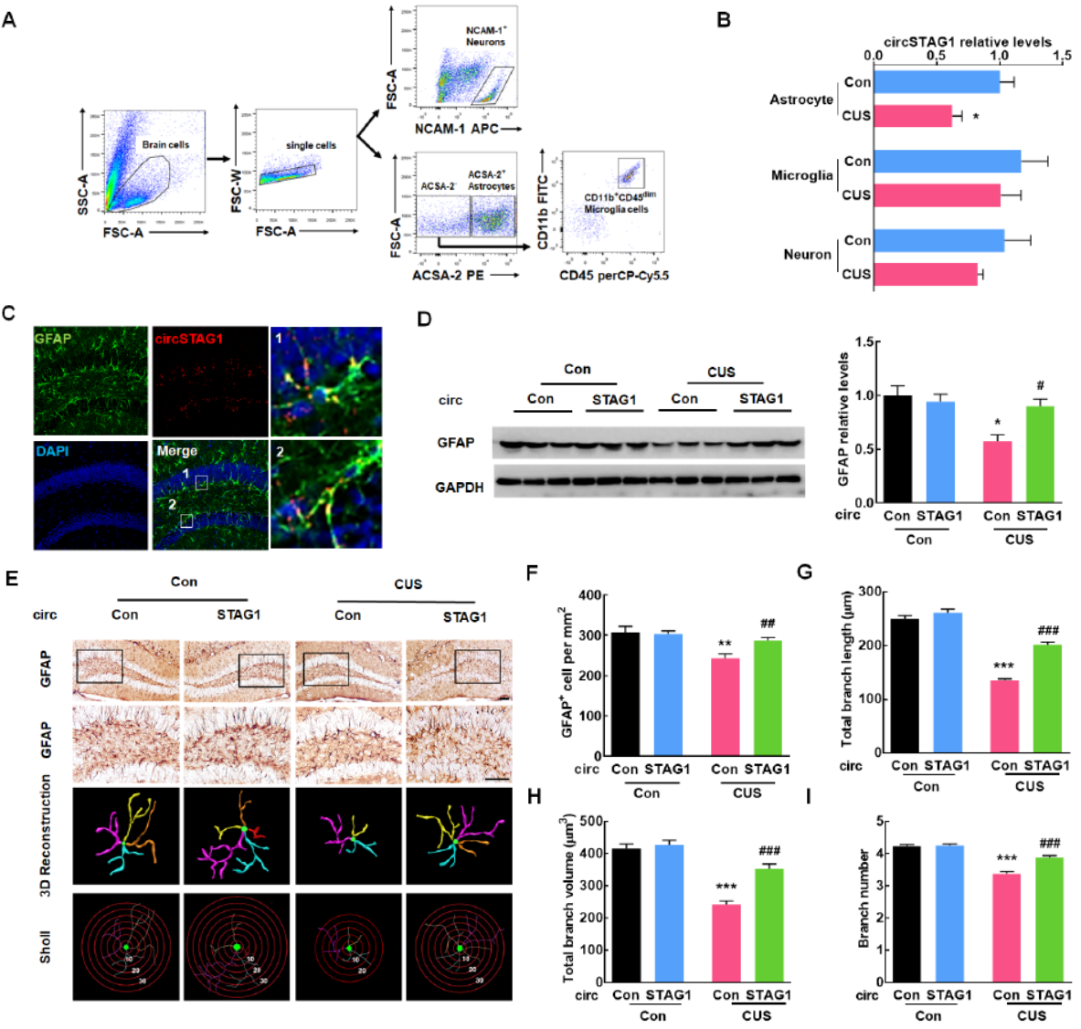 过表达circSTAG1可缓解CUS模型小鼠海马区星型胶质细胞的功能障碍