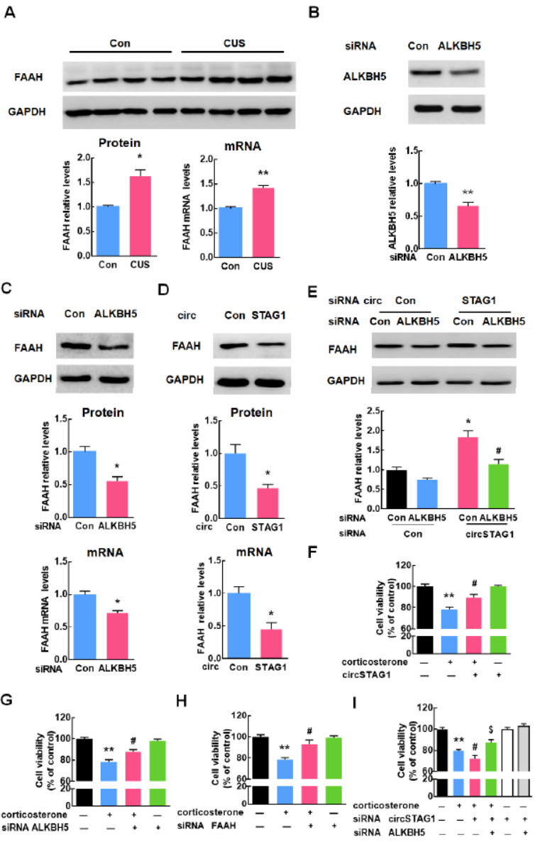 circSTAG1通过ALKBH5调控FAAH mRNA的m6A修饰