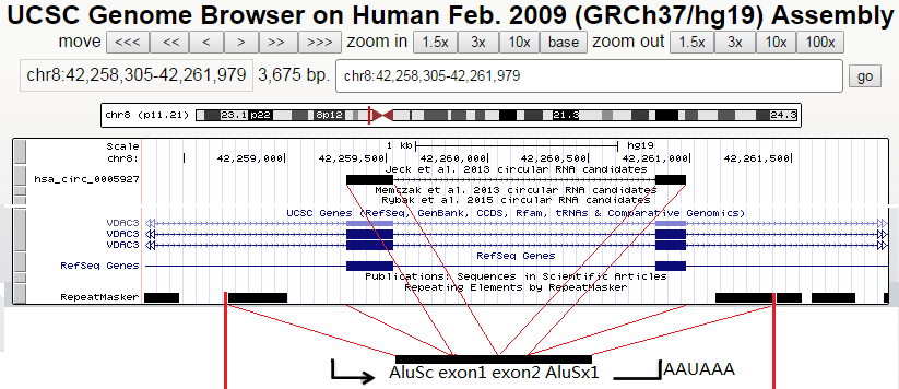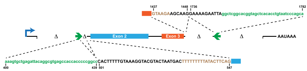 - 侧翼序列长度无界定标准。环状RNA侧翼存在的重复序列如Alu元件,距离环状RNA的距离不等,需要克隆的片段长度不一。